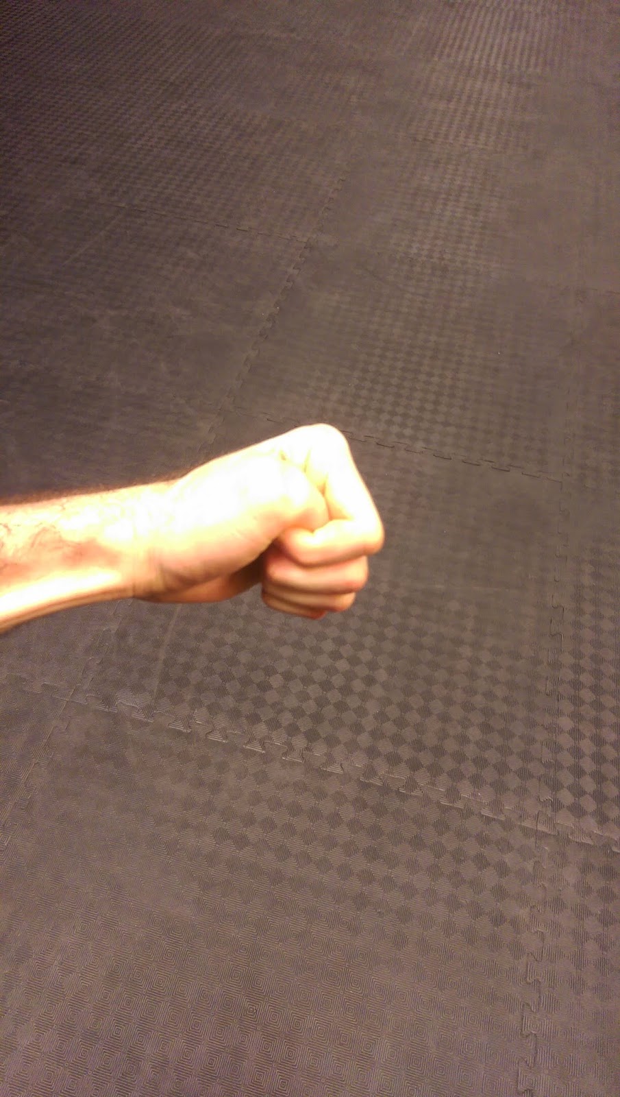 I had mostly done Taekwondo as my primary martial art all the way through college. After college, my roommate and I got a punching bag, the kind that has a plastic stand that you fill with water. I had spent years kicking and punching the air and always pulling my strikes when sparring because control was paramount. I was excited to finally get to hit something and see what kind of damage I could do. We filled it up with water and I started hitting full force. Kick, kick, kick, punch……..ow! For the first time ever, I punched something as hard as I could. At that speed and force, any little structural flaw was going to be felt in a big way. Like the picture above, my wrist was bent down, ever so slightly, but that meant that the force from my forearm didn’t transfer into my hand. It sent my forearm past my hand, but my knuckles were firmly planted on the bag. Therefore…sprained wrist. It’s not a mistake I’ve made twice. Lesson learned: align your forearm bones with your hand bones.