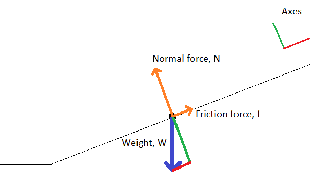 So, the normal force is equal to the component of the weight that is perpendicular to the surface. The friction force is equal to the component of the weight that is parallel to the surface. This is why I separated foot sweeps into three categories. If a lot of weight is put on one foot, then the maximum friction applied by the ground is high, which makes a foot sweep like the sapu very difficult but the outer reaping throw ideal. In any case, the amount of force, parallel to the ground, that you need to apply to your opponent’s foot to affect a sweep is dependent on how much weight they are putting on that foot and what the surfaces involved are.
